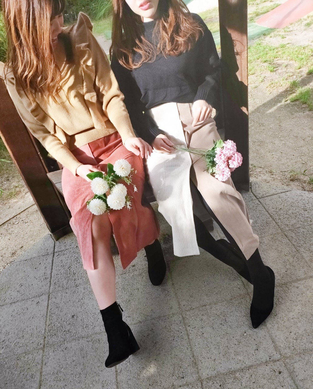 ボトムのシルエットは、スカートはタイトめパンツはストレートシルエットが◎