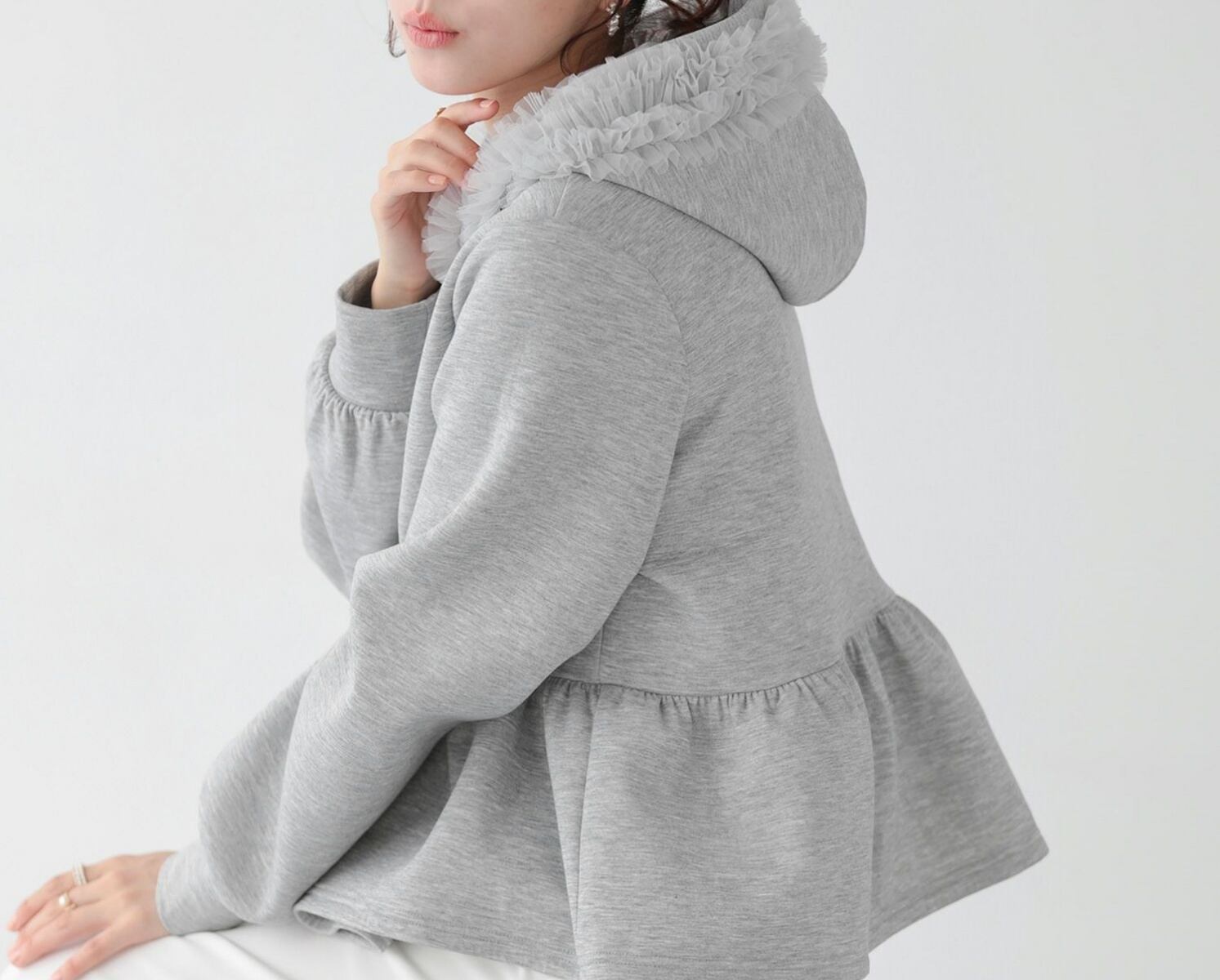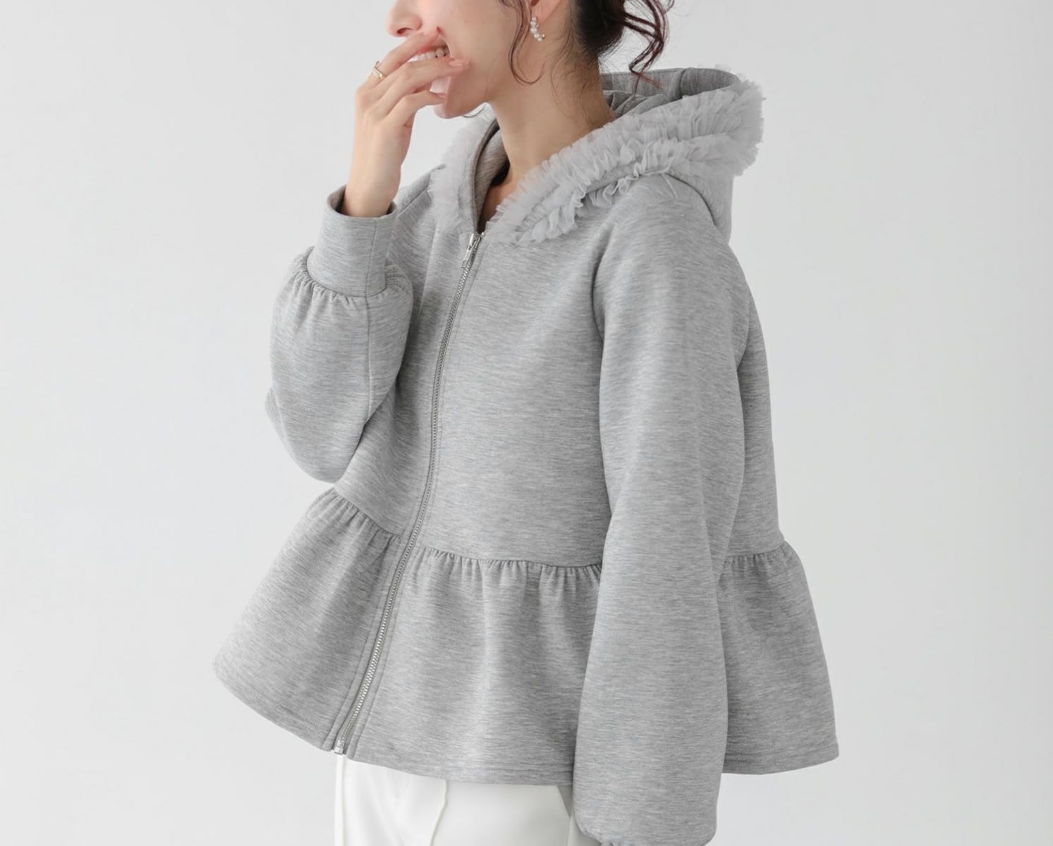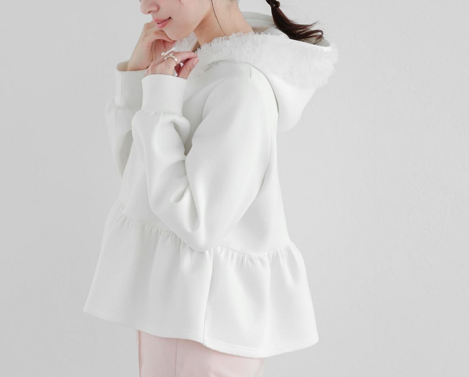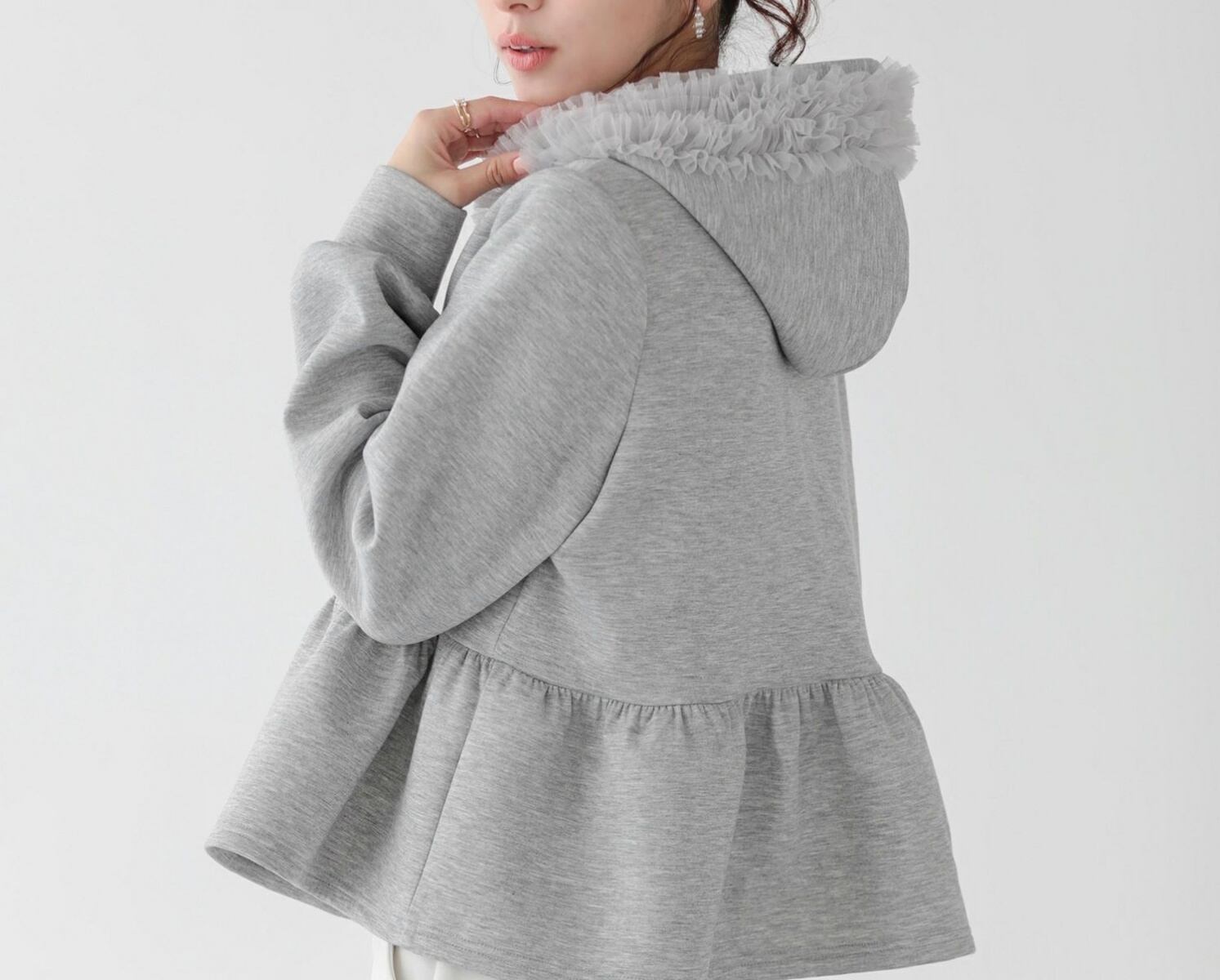 tulleが施された大人feminineな パーカーは春のマストアイテム♪