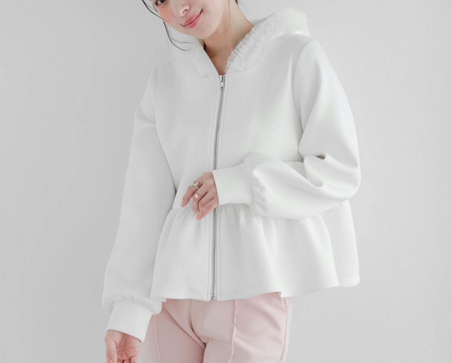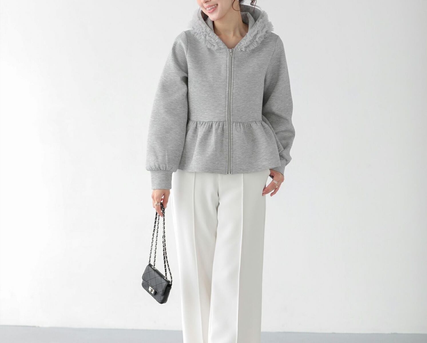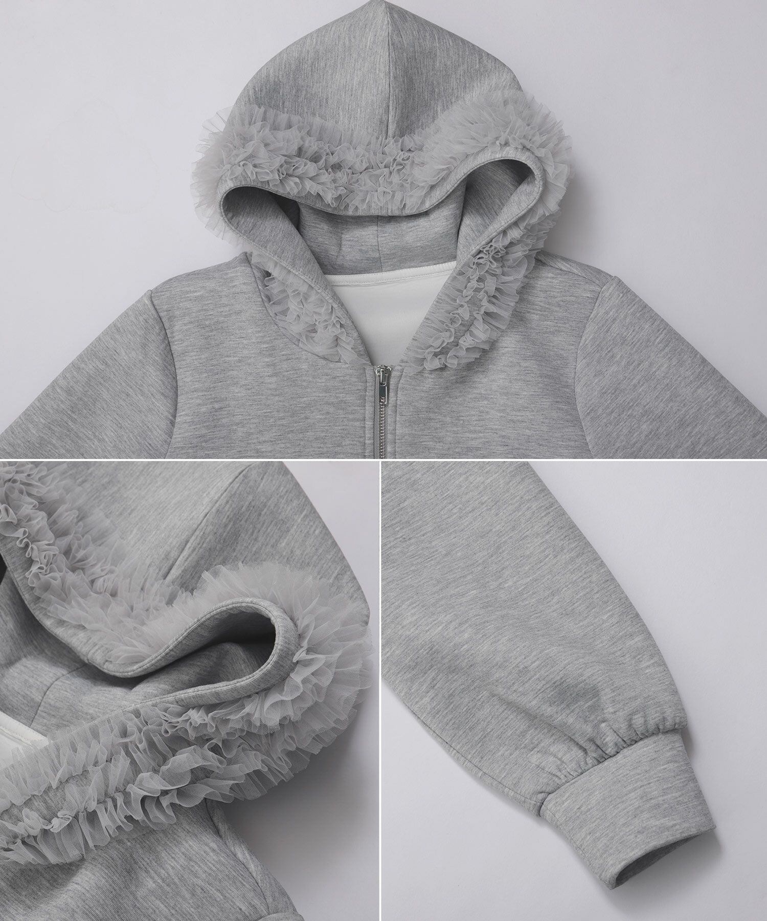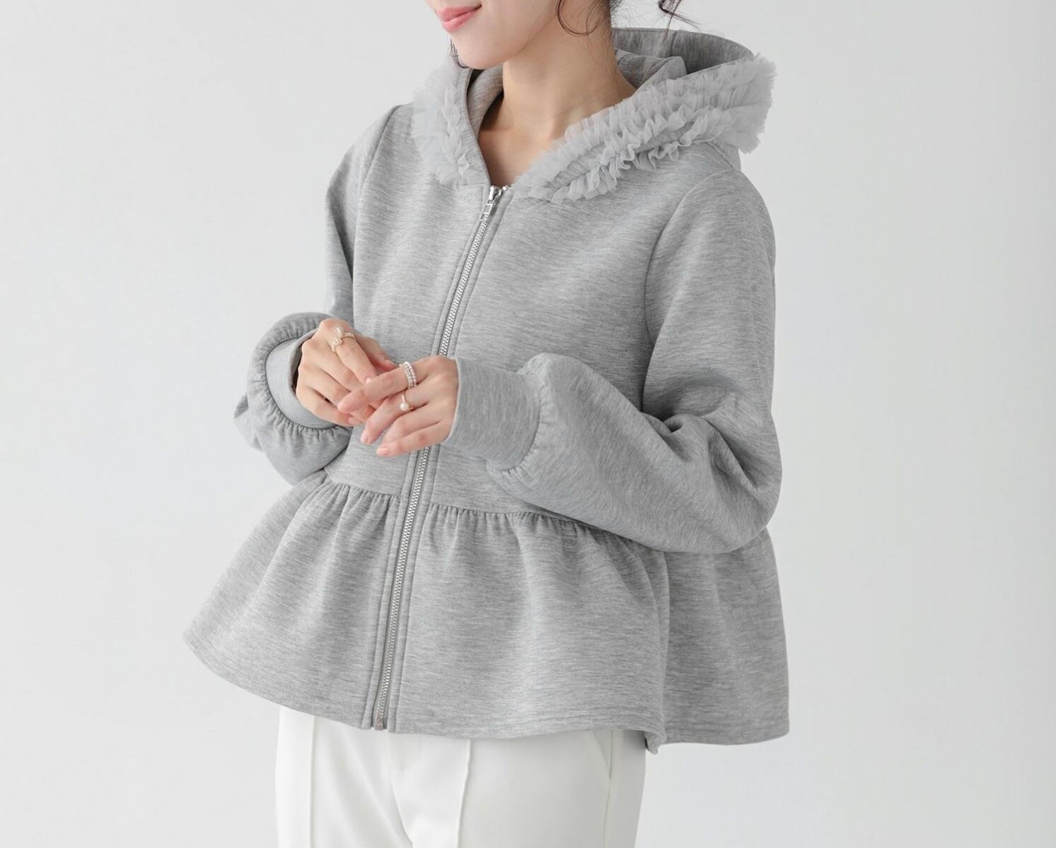 tulleが施された大人feminineな パーカーは春のマストアイテム♪
