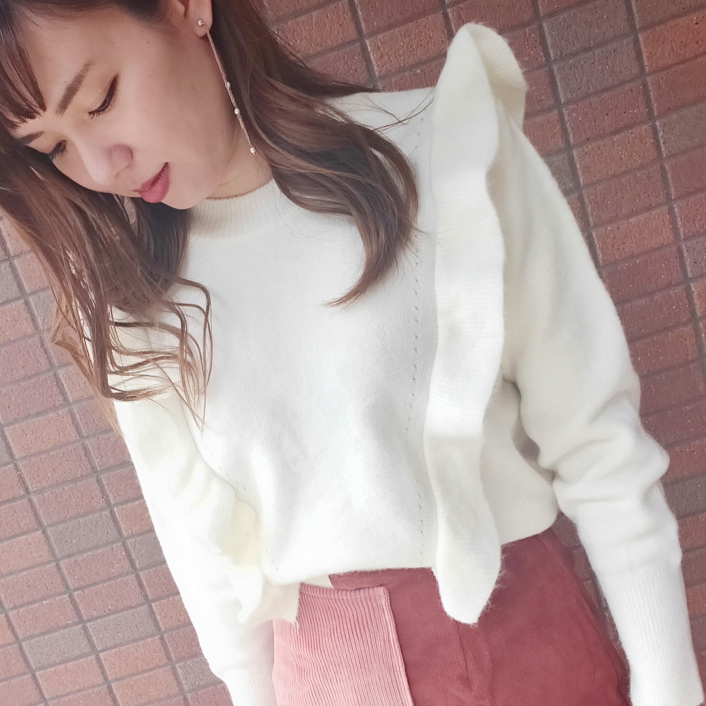 女性らしさ満点の暖かみのある素材感のニットにボリュームのあるFRILLがポイント♪